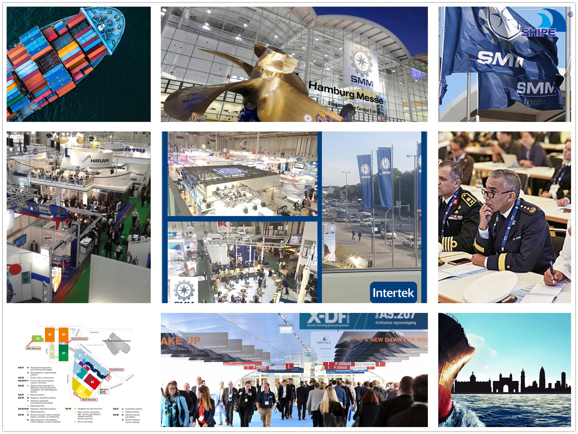 德國(guó)漢堡國(guó)際海事展(簡(jiǎn) 稱 SMM)始于 1963 年,是世界造船領(lǐng)域規(guī)模最大、檔次最高、影響力最強(qiáng)的專業(yè)性國(guó)際海事貿(mào)易展覽會(huì),聚集了國(guó)際上所有業(yè)內(nèi)知名企業(yè)。該展會(huì)由德國(guó)漢堡會(huì)展公司主辦,德國(guó)造船及海洋技術(shù)協(xié)會(huì)、德國(guó)機(jī)械協(xié)會(huì)、德國(guó)電子工業(yè)協(xié)會(huì)等協(xié)辦,每?jī)赡昱e辦一屆。